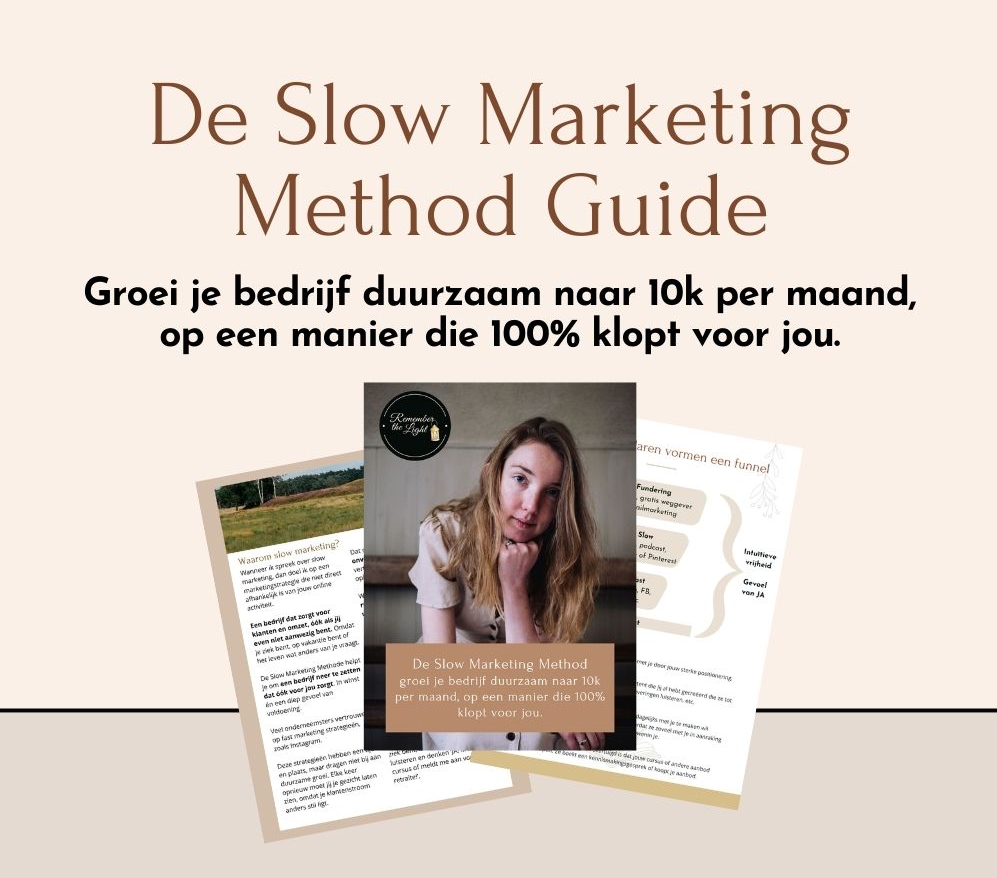 In deze gratis guide neem ik je mee in de 4 pilaren van Slow Marketing, zodat jij direct een slow marketing strategie in je bedrijf kunt implementeren.